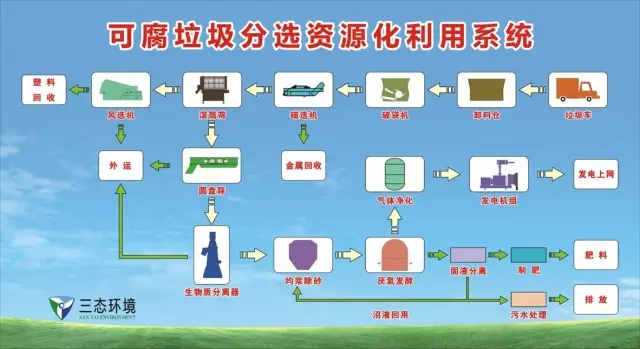 以浙江三門(mén)縣鄉(xiāng)鎮(zhèn)垃圾處理項(xiàng)目為案例,該項(xiàng)目技術(shù)最大特點(diǎn)為具有優(yōu)良的分選技術(shù)——二次分類自動(dòng)化??梢栽诖迕癯醴值幕A(chǔ)上,經(jīng)機(jī)械自動(dòng)精細(xì)分選,可選出90%以上的可腐爛垃圾,彌補(bǔ)現(xiàn)階段人工分類的不足。前端分選分類工程是三態(tài)的研究重點(diǎn)之一,其開(kāi)發(fā)了小型前端智能分類、大型后端機(jī)械分類。厭氧發(fā)酵工藝也是三態(tài)體系中的重點(diǎn)技術(shù),目前吉林項(xiàng)目已運(yùn)行三年多,是國(guó)內(nèi)較為大型的混合垃圾厭氧發(fā)酵穩(wěn)定運(yùn)行的唯一一家。