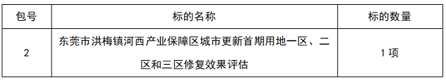 合同包2(東莞市洪梅鎮(zhèn)河西產(chǎn)業(yè)保障區(qū)城市更新首期用地一區(qū)、二區(qū)和三區(qū)修復效果評估)