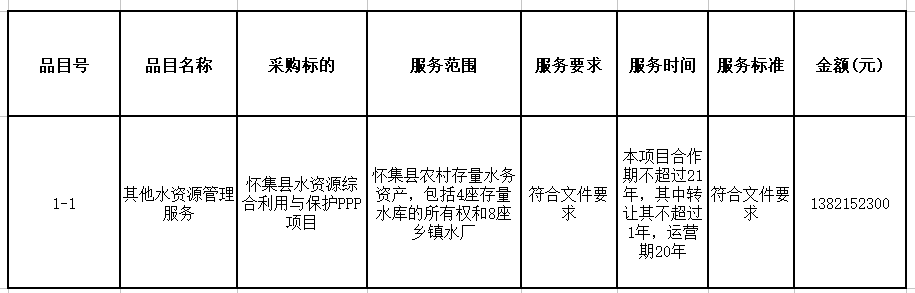 原標題:懷集縣水資源綜合利用與保護PPP項目(2021-MY035)中標公告