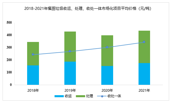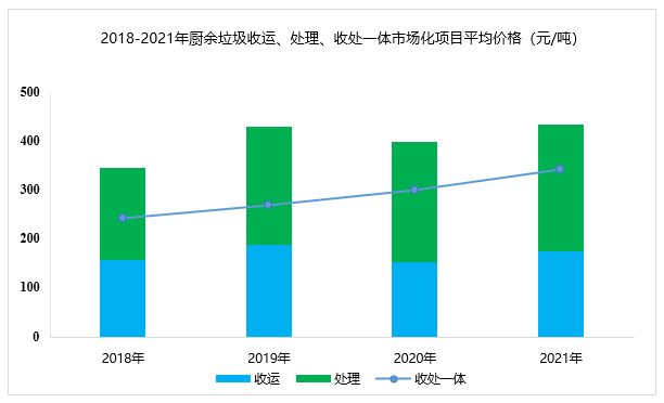 據(jù)E20數(shù)據(jù)庫統(tǒng)計(jì),廚余垃圾收運(yùn)市場的價(jià)格與地區(qū)相關(guān)性較大,平均收運(yùn)價(jià)格145元/噸,處理環(huán)節(jié)的平均中標(biāo)價(jià)為239元/噸,收處一體化價(jià)格為340元/噸,略高于餐廚垃圾的平均水平,并且呈逐年上漲的趨勢(shì)。因此,隨著垃圾分類工作的全面推進(jìn)及中標(biāo)價(jià)格的上漲,預(yù)計(jì)“十四五”期間廚余垃圾處理市場將迎來新一輪推動(dòng)。