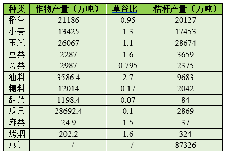 根據(jù)國家統(tǒng)計(jì)局公開數(shù)據(jù)測(cè)算,2020年我國主要農(nóng)作物的秸稈理論資源量達(dá)8.73億噸左右。