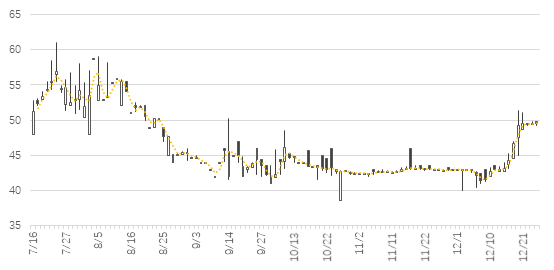 價(jià)格方面,截至12月24日,全國(guó)碳市場(chǎng)掛牌協(xié)議交易平均價(jià)格約45.9元/噸,最高價(jià)61.07元/噸,最低價(jià)38.5元/噸,絕大部分在40到60區(qū)間內(nèi)波動(dòng),總體呈現(xiàn)波動(dòng)降低的趨勢(shì),12月以來(lái)隨著履約期臨近,碳價(jià)開(kāi)始逐步升高,從12月初的約42元/噸回升到50元/噸左右,12月21日大宗交易也出現(xiàn)了46.3元/噸的較高交易價(jià)格。氣候投融資試點(diǎn)工作將著力探索支持全國(guó)碳市場(chǎng)長(zhǎng)期平穩(wěn)運(yùn)行的相應(yīng)手段,推動(dòng)碳市場(chǎng)提供更穩(wěn)定的長(zhǎng)期價(jià)格信號(hào),促進(jìn)減排活動(dòng)的實(shí)施效率,同時(shí)也挖掘碳配額的價(jià)值,為企業(yè)減排活動(dòng)提供更全面的支持。