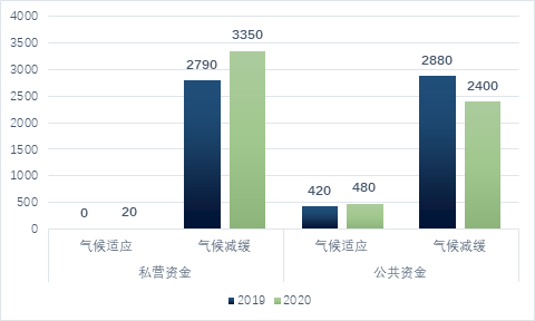 圖 3 2019-2020年全球公共與私營(yíng)在氣候減緩與適應(yīng)的投資情況(單位:億美元)
