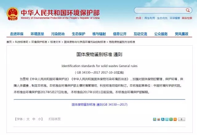 因此,為了統(tǒng)一各個檢驗機構(gòu)或鑒別機構(gòu)鑒別固體廢物的尺度,保證鑒別質(zhì)量和鑒別結(jié)果的公正和可靠,環(huán)境保護(hù)部與國家質(zhì)量監(jiān)督檢驗總局聯(lián)合發(fā)布《固體廢物鑒別標(biāo)準(zhǔn) 通則》(GB 34330-2017)。該標(biāo)準(zhǔn)是我國首次制定的關(guān)于固體廢物的鑒別標(biāo)準(zhǔn),具有強制執(zhí)行的效力。