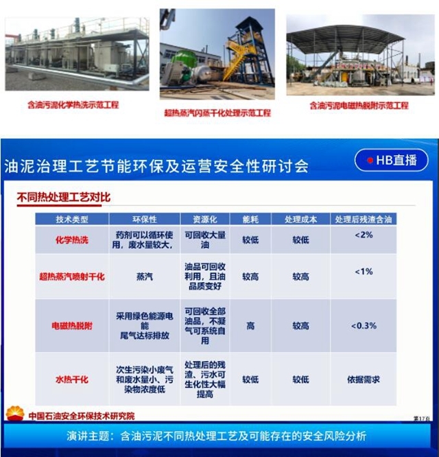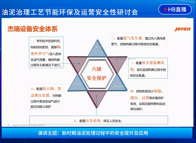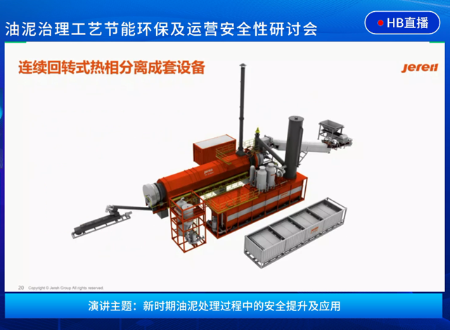 本次研討會杰瑞環(huán)保工藝工程師張巖也帶來了《新時期油泥處理過程中的安全提升及應(yīng)用》的主題分享:杰瑞環(huán)保擁有連續(xù)回轉(zhuǎn)式熱相分離、連續(xù)螺旋式分析分離、調(diào)制分離、油罐機(jī)械清洗、廢棄物回注等多種核心技術(shù),以及物料預(yù)處理及均質(zhì)化等配套技術(shù),針對不同客戶需求、不同領(lǐng)域的含油廢棄物,以最合適的分類分質(zhì)方式,提供高標(biāo)準(zhǔn)低成本、高效率的一體化的含油廢棄物及工業(yè)廢泥治理方案。