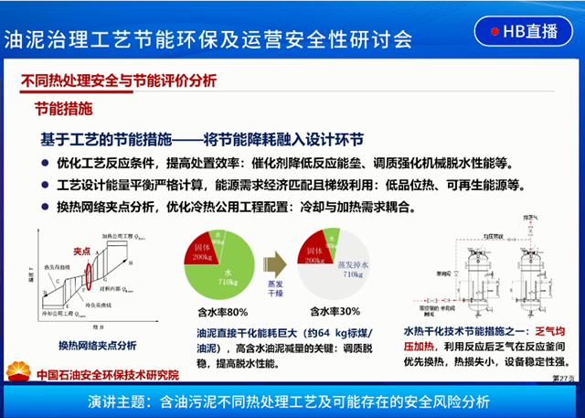 在《含油污泥不同熱處理工藝及可能存在的安全風(fēng)險分析》的主題演講中,劉光全詳細(xì)介紹了中國石油集團(tuán)安全環(huán)保技術(shù)研究院開發(fā)的熱處理工藝,包括含油固廢化學(xué)熱洗、超熱蒸汽噴射干化、熱脫附、水熱干化等,并對幾種技術(shù)的特點及安全性進(jìn)行了闡述與分析。