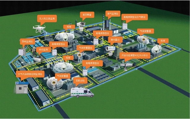 “點(diǎn)”監(jiān)測(cè):包含工業(yè)園區(qū)確定有組織排放污染源監(jiān)測(cè)裝置、生產(chǎn)工藝集中和無(wú)組織排放密集的特征微型監(jiān)測(cè)站、危險(xiǎn)單元?dú)怏w檢測(cè)報(bào)警裝置及視頻監(jiān)控裝置。