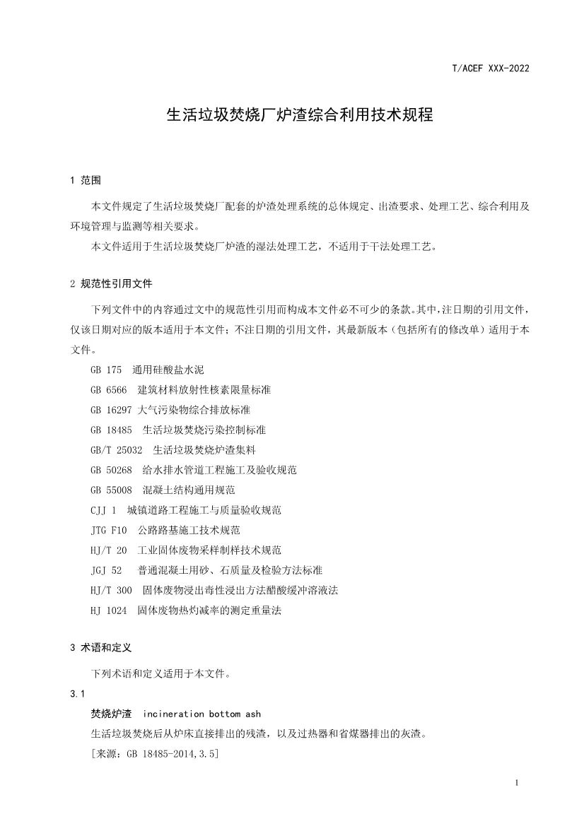 《生活垃圾焚燒廠爐渣綜合利用技術(shù)規(guī)程(征求意見稿)》團(tuán)標(biāo)發(fā)布!