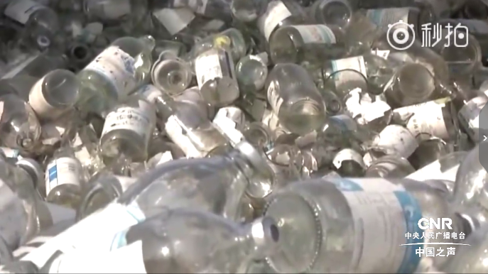 龔恩東:他的來源,涉及到南京十幾家醫(yī)院每個(gè)醫(yī)院大概在10噸左右,收了以后他進(jìn)行簡單地分類,輸液瓶歸輸液瓶,輸液袋歸輸液袋。