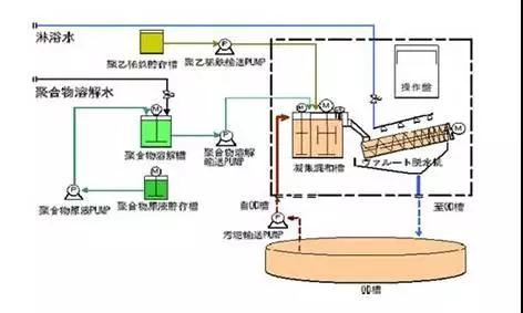 為了更好地提高氣浮處理效果,在回流加壓溶氣氣浮工藝中向廢水中投入某種絮凝劑,使水中難沉淀的膠體狀懸浮顆粒或乳化污染物失穩(wěn),在互相碰撞的作用下,聚集、聚合或搭接形成較大的顆?;蛐鯛钗?,從而使得污染物能夠更容易下沉或上浮而被去除。