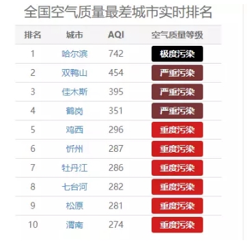 ——此刻,11月6日22時39分,哈爾濱AQI(空氣質(zhì)量指數(shù))達742,屬極度污染。