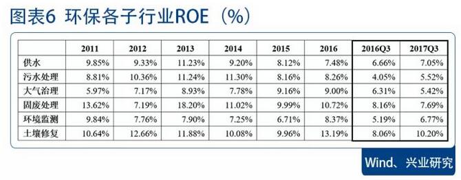 子行業(yè)間盈利能力差異明顯,土壤修復(fù)板塊盈利能力最強(qiáng)。2017年前三季度子行業(yè)盈利能力排行前三位的是土壤修復(fù)、固廢處理和供水板塊,ROE分別為10.20%、7.69%和7.05%。從ROE變化上看,受凈利率下滑影響的固廢處理和大氣治理板塊ROE同比分別下滑0.47和0.89個百分點(diǎn),其余子行業(yè)ROE均有不同程度上升,子行業(yè)間盈利能力差異仍然比較明顯。