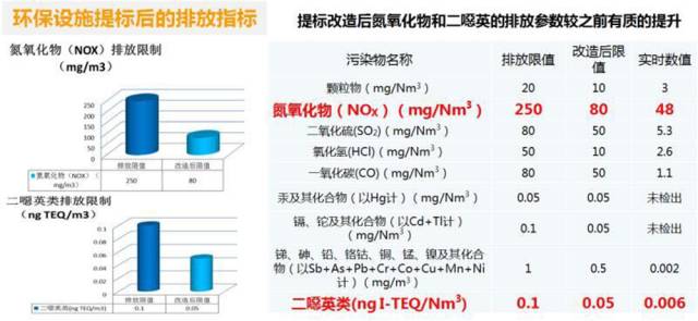 鹽田廠按照2015年深圳市政府發(fā)布的《深圳市環(huán)境基礎設施提升改造工作方案(2015-2017)年》要求,于2016年9月進行了全面的提標改造,總投資達8740萬元,為進一步去除煙氣中的酸性氣體和氮氧化物,增加了干法脫酸和SCR脫硝系統(tǒng),提標改造后的排放指標遠優(yōu)于國標和歐盟標準。