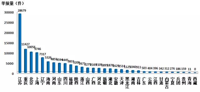 2017年8-10月各省網(wǎng)絡(luò)舉報(bào)量圖