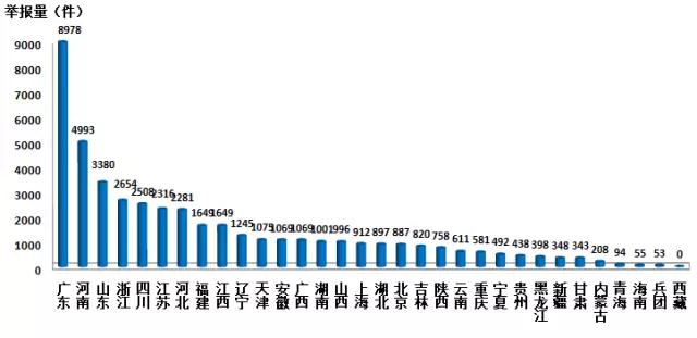 2017年8-10月,公眾使用微信舉報(bào)最頻繁的是廣東、河南兩省,舉報(bào)數(shù)量合計(jì)占全國總數(shù)的31.2%。