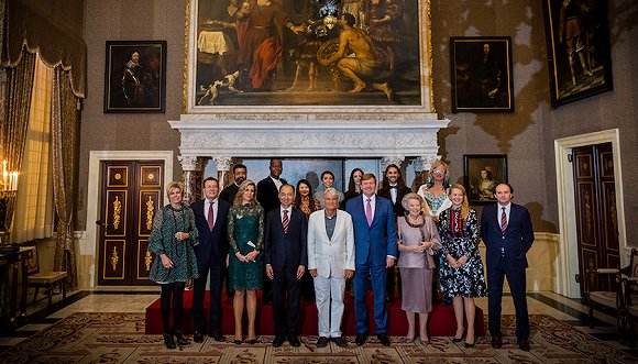 馬軍(前排左四)與荷蘭皇室(前排左三:荷蘭王后;前排右四:荷蘭國王;前排右三:荷蘭前女王。來源:克勞斯親王基金會)