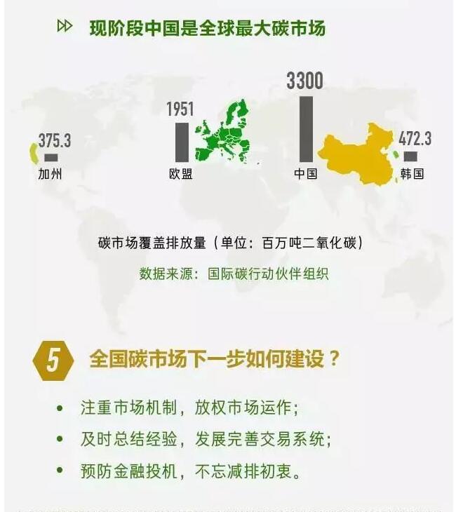 12月19日,國家發(fā)改委副主任張勇在全國碳排放交易體系啟動(dòng)工作新聞發(fā)布會(huì)上表示,經(jīng)國務(wù)院同意,國家發(fā)改委印發(fā)了《全國碳排放權(quán)交易市場(chǎng)建設(shè)方案(發(fā)電行業(yè))》,標(biāo)志著中國全國碳排放交易體系已完成總體設(shè)計(jì)并正式啟動(dòng)。下面,通過一張圖《五步了解碳市場(chǎng)》。
