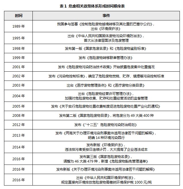 至2017年,危險廢物治理法規(guī)體系日趨完善。體系形成的最大標(biāo)志之一是危廢監(jiān)管力度加大。2017年5月,環(huán)保部發(fā)布《“十三五”全國危險廢物規(guī)范化管理督查考核工作方案》,提出建立分級負責(zé)考核機制,以省(區(qū)、市)為主組織考核,國家對全國的規(guī)范化管理情況進行抽查。在落實主體責(zé)任的前提下,進一步加強危廢監(jiān)管。