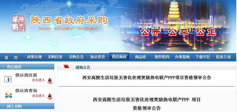陜西省政府采購(gòu)網(wǎng)發(fā)布了《西安高陵生活垃圾無(wú)害化處理焚燒熱電聯(lián)產(chǎn)PPP 項(xiàng)目資格預(yù)審公告》。