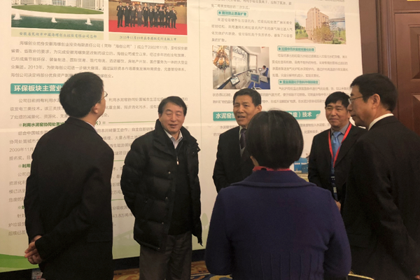 中國建筑材料聯(lián)合會、水泥協(xié)會喬龍德會長和科技部社會發(fā)展科技司鄧小明副司長參觀海螺創(chuàng)業(yè)展板