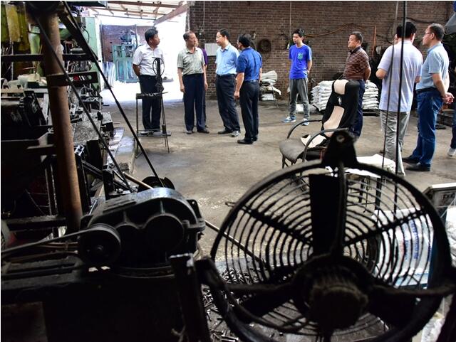 2017年5月25日,環(huán)保部強(qiáng)化督查人員在河北邯鄲永年區(qū)一企業(yè)檢查。攝影/章軻