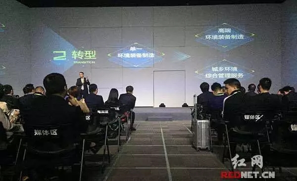 ▲中聯(lián)環(huán)境執(zhí)行總裁陳培亮闡述兩個(gè)戰(zhàn)略轉(zhuǎn)型