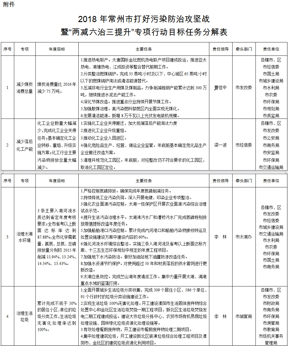 市政府關(guān)于印發(fā)《2018年常州市打好污染防治攻堅戰(zhàn)暨“兩減六治三提升”專項行動工作方案》的通知