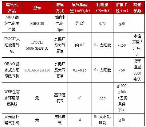 增氧曝氣技術(shù)產(chǎn)品的參數(shù)對(duì)比