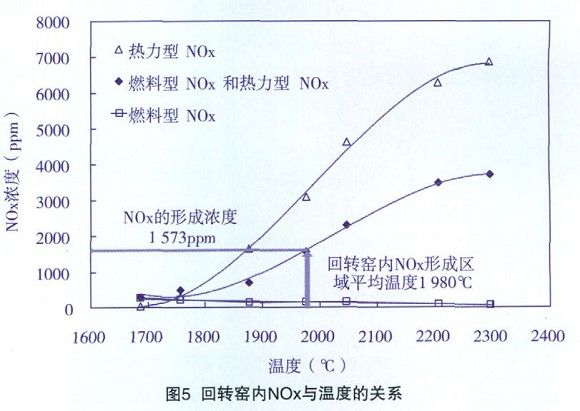 在水泥熟料的煅燒過程中,會產(chǎn)生大量的氮氧化物,這些氮氧化物主要是NO和NO2,其中NO約占90%以上,而NO2只有5%~10%。按其來源劃分主要取決于原、燃料中氮的含量、燃燒溫度的高低和燃料類型。