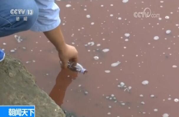 央視記者:粗略一看,人們會以為我身后的這個大湖是自然形成的湖泊,但實際上,它是人為排污造成的類似湖泊一樣納污湖,站在它的旁邊,已經有一種非常難聞的臭味,而且湖水全都呈現(xiàn)出深紅的顏色,岸邊還有一些白色的泡沫和垃圾。
