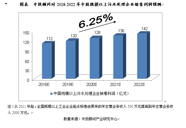 2016年,我國(guó)規(guī)模以上污水處理企業(yè)銷(xiāo)售利潤(rùn)達(dá)到了101.51億元,相比上年增長(zhǎng)33.66%。我們預(yù)計(jì),2018年我國(guó)規(guī)模以上污水處理企業(yè)銷(xiāo)售利潤(rùn)將達(dá)到112億元,未來(lái)五年(2018-2022)年均復(fù)合增長(zhǎng)率約為6.25%,2022年將達(dá)到142億元。