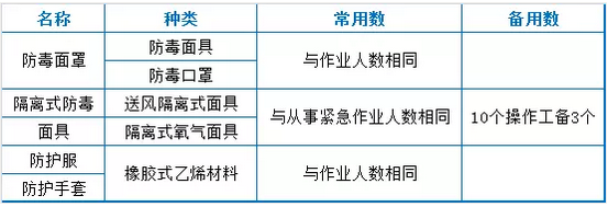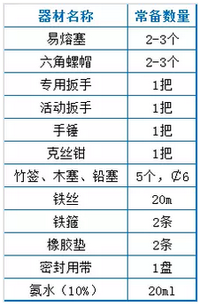 c、使用現(xiàn)場應按下表配備搶修器材;