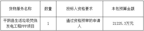 二、采購項(xiàng)目名稱:平陰縣生活垃圾焚燒發(fā)電工程PPP項(xiàng)目