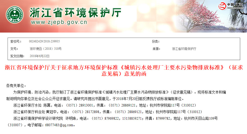 《浙江標(biāo)準(zhǔn)主要水污染物排放限值》(征求意見稿)