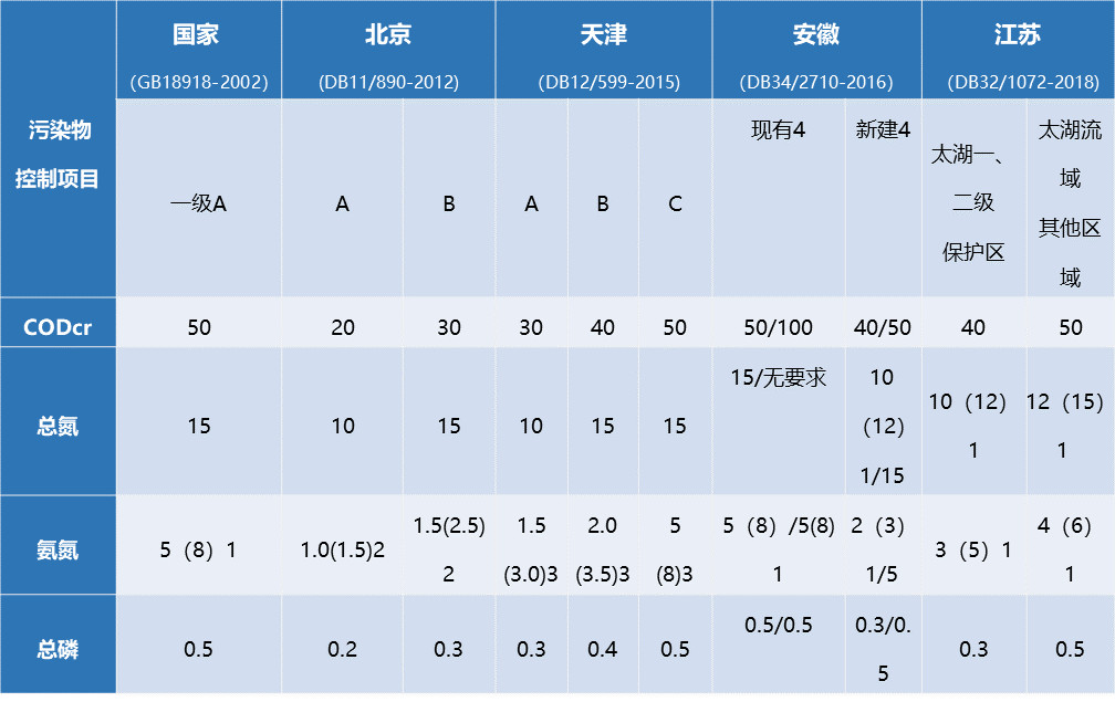 注:文中表格來自浙江省《城鎮(zhèn)污水處理廠主要水污染物排放標(biāo)準(zhǔn)》(征求意見稿)編制說明
