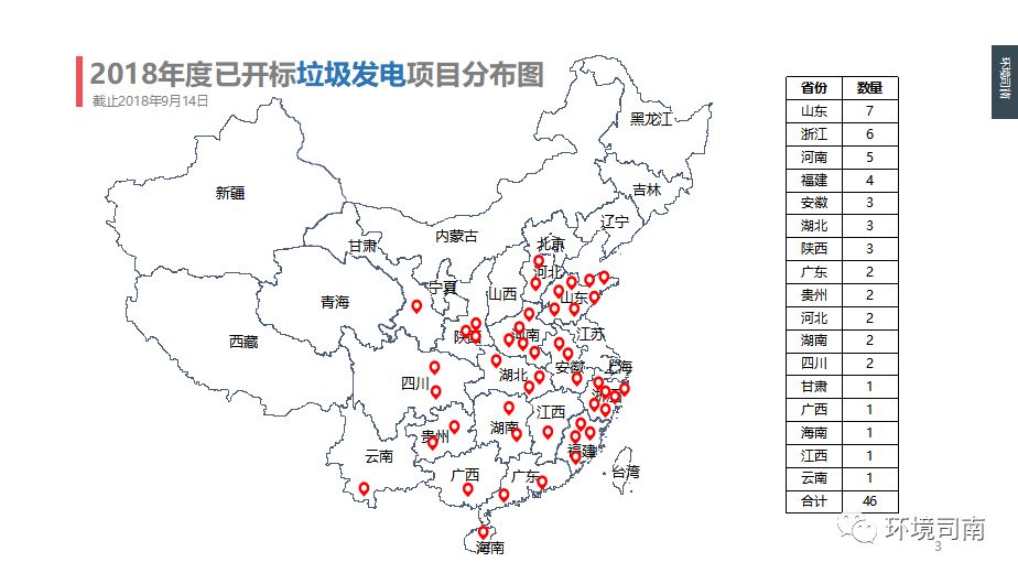 在全國開標的46個垃圾發(fā)電中,21個位于華東地區(qū),占項目總量的45%。