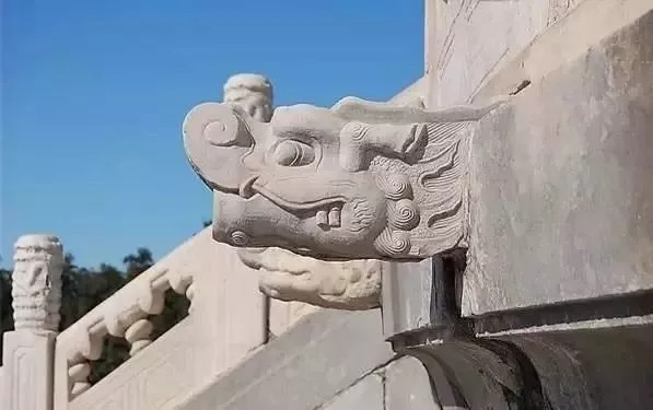 故宮中有很多螭首,三大殿三重臺基上就有多達1142個!它們其實是排水系統(tǒng)的出水口。地面和溝渠中的雨水,從這上千螭首中發(fā)泄而出,形成“千龍吐水”的壯觀景象。