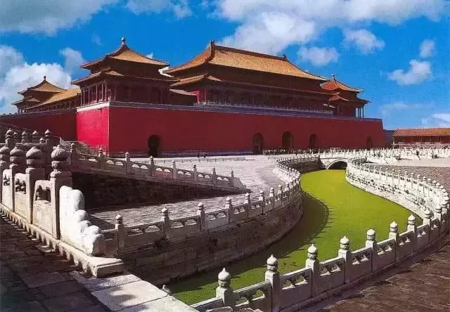 答案是這里!大家知道,天安門外有著名的金水河,其實準確地說,那是“外金水河”。而在午門之內(nèi),太和門前流經(jīng)的則是“內(nèi)金水河”(上圖),它是紫禁城的內(nèi)河。故宮北門神武門地平標高46.05米,南門午門地平標高44.28米,北高南低。故宮的排水系統(tǒng),利用中央高、四周低、北部高、南部低的形勢,迅速將雨水匯總,排入內(nèi)河,流出宮外。