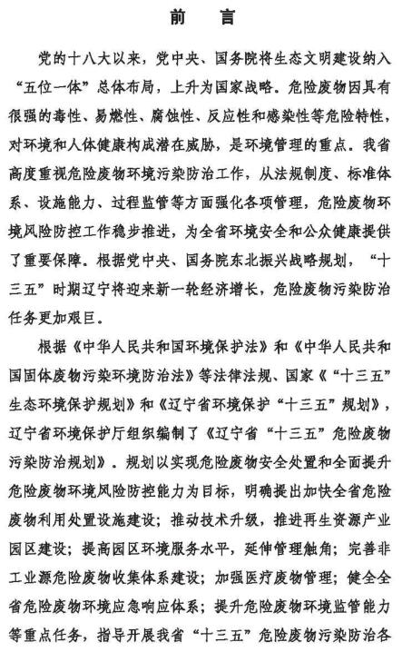 政策|《安徽省“十三五”危險廢物污染防治規(guī)劃》