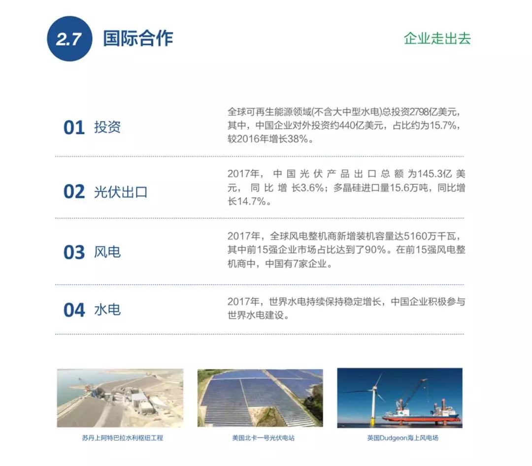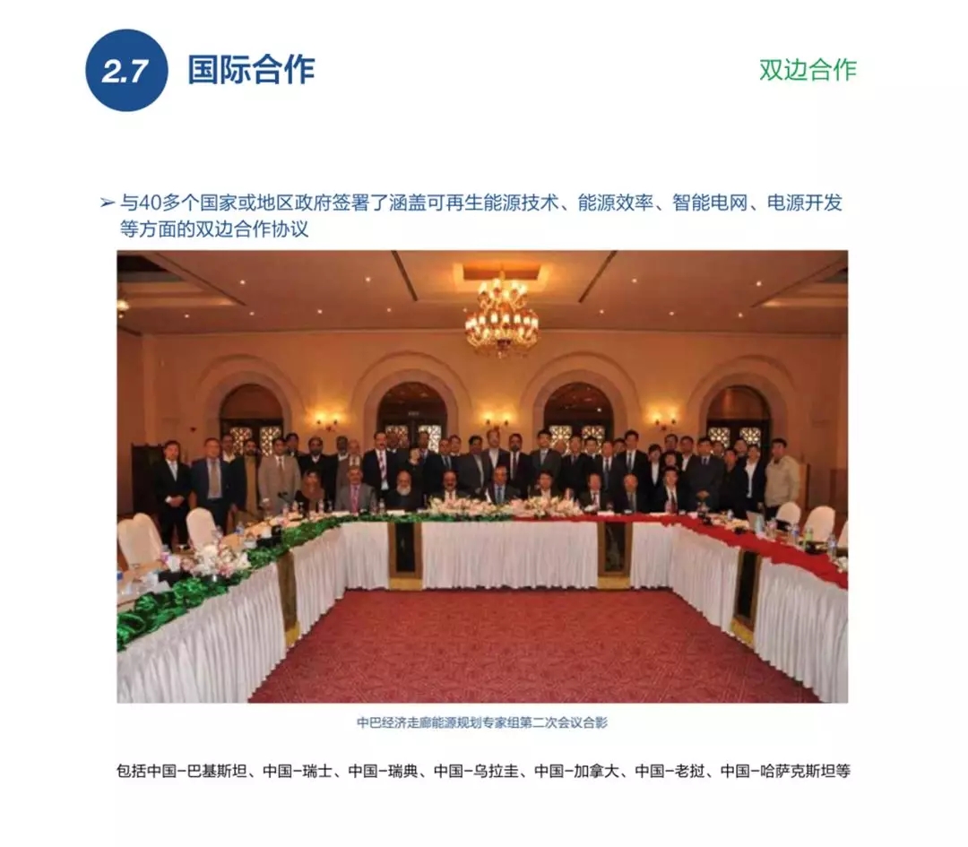 國(guó)際合作方面,去年國(guó)家能源局推動(dòng)了20余項(xiàng)多邊機(jī)制下可再生能源的領(lǐng)域交流互動(dòng),同時(shí)與40多個(gè)國(guó)家和地方政府簽署涵蓋可再生能源技術(shù)、能源效率、智能電網(wǎng)、電源開發(fā)等方面的雙邊合作協(xié)議。
