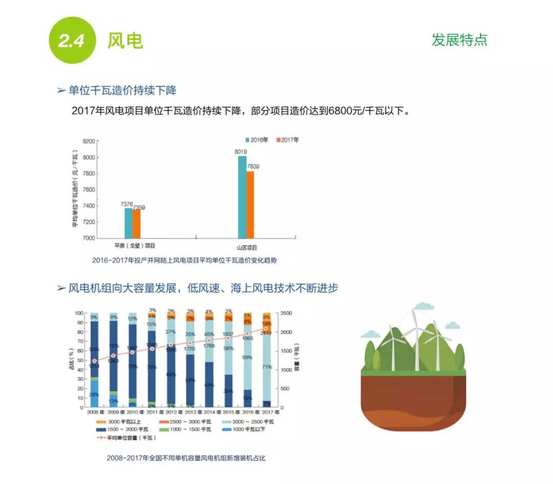 在風(fēng)電方面,去年我國(guó)核準(zhǔn)的陸上風(fēng)電和海上風(fēng)電達(dá)4958萬千瓦,2017年投產(chǎn)風(fēng)電達(dá)到了1503萬千瓦,累計(jì)并網(wǎng)裝機(jī)容量1.64億千瓦。棄風(fēng)現(xiàn)象得到了有效控制,風(fēng)電單位千瓦造價(jià)持續(xù)下降,2017年部分項(xiàng)目的造價(jià)已經(jīng)低于每千瓦6800元。