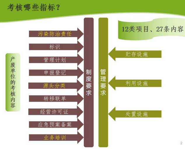 如果你連危險廢物規(guī)范化的要求都不清楚,那可能要補(bǔ)的課不是一點(diǎn)點(diǎn)了。危險廢物規(guī)范化管理指標(biāo)共12類27項(xiàng)內(nèi)容,這里就不詳細(xì)介紹了。作為一般的產(chǎn)廢單位,做到40分以上,才算達(dá)標(biāo)。