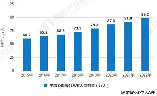 2015-2022年中國節(jié)能服務從業(yè)人員數量統(tǒng)計情況及預測