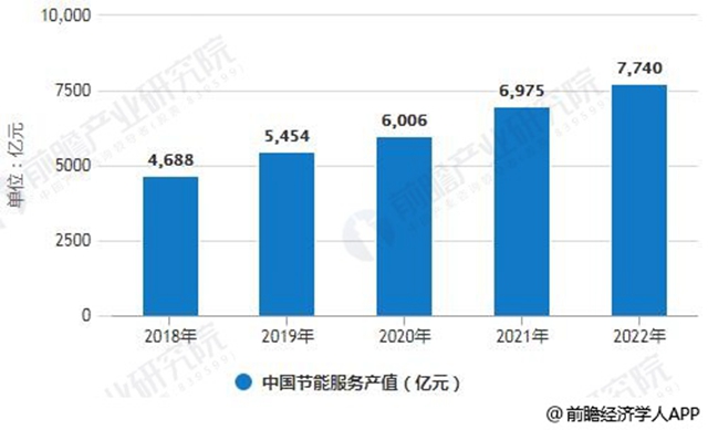 2018-2022年中國節(jié)能服務產值統(tǒng)計情況及預測