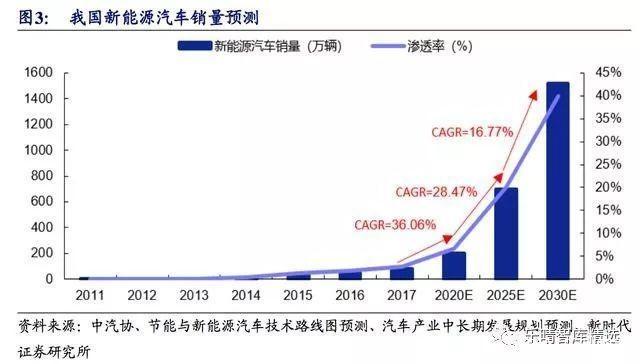 相對于我國傳統(tǒng)汽車每年接近3000萬輛的銷售市場,新能源汽車銷量滲透率不到3%,行業(yè)處于高速增長的初期階段。