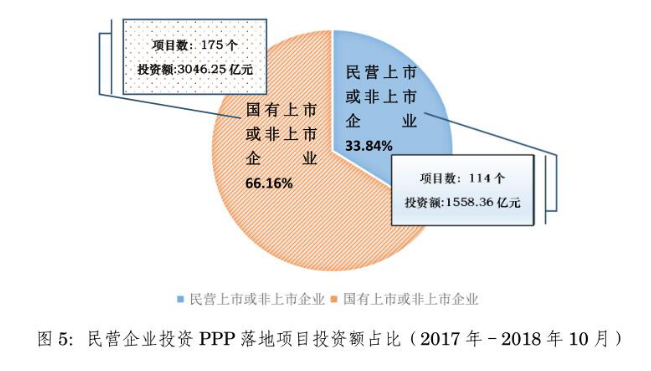 2018年10月,民營企業(yè)以聯(lián)合體牽頭方或者單獨作為社會資本方落地項目投資額24.41億元。2017年至2018年10月累計投資額1558.36億元,占33.84%。