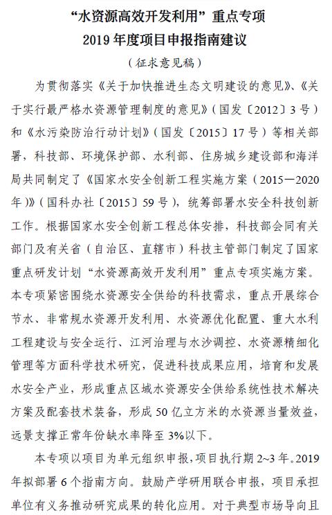日前,科技部社會發(fā)展科技司發(fā)布了《關(guān)于國家重點研發(fā)計劃“大氣污染成因與控制技術(shù)研究”等6個重點專項2019年度項目申報指南征求意見的通知》,涉及“大氣污染成因與控制技術(shù)研究”、“典型脆弱生態(tài)修復與保護研究”、“水資源高效開發(fā)利用”等環(huán)保相關(guān)重點專項,詳情如下: