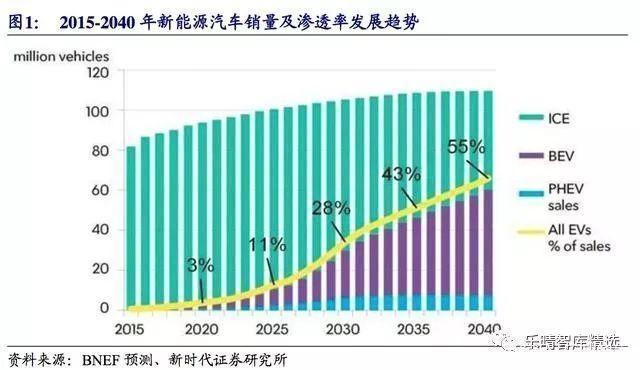 新能源汽車發(fā)展空間巨大,隨著新能源汽車性能提升以及痛點的改善,新能源汽車帶來的沖擊越來越大,滲透率隨之提升。 根據(jù)BNEF預(yù)測,到2025年全球新能源汽車的銷量將達(dá)到1100萬輛,滲透率達(dá)到11%,同年燃油汽車銷量將達(dá)到拐點,步入下行趨勢;到2030年全球銷量將繼續(xù)攀升至3000萬輛,滲透率達(dá)到28...