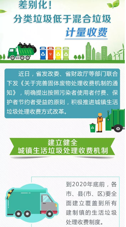 省發(fā)改委、省財政廳、省住建廳等部門發(fā)出《關(guān)于完善固體廢物處理收費機制的通知》。其中提出,分類垃圾實行計量收費,收費標準按照低于混合垃圾收費標準的原則制定,激勵用戶開展生活垃圾分類。 收費制度:2020年底前覆蓋到所有建制鎮(zhèn) 有關(guān)部門將進一步完善城市生活垃圾處理收費制度,擴大城市生活垃圾處理收費制度覆...
